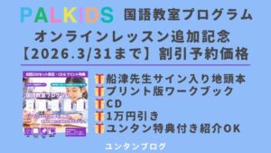 まず、オンラインレッスン付きのリニューアルされた国語教室プログラムを予約価格で購入できる期間は限られているのでご注意ください。